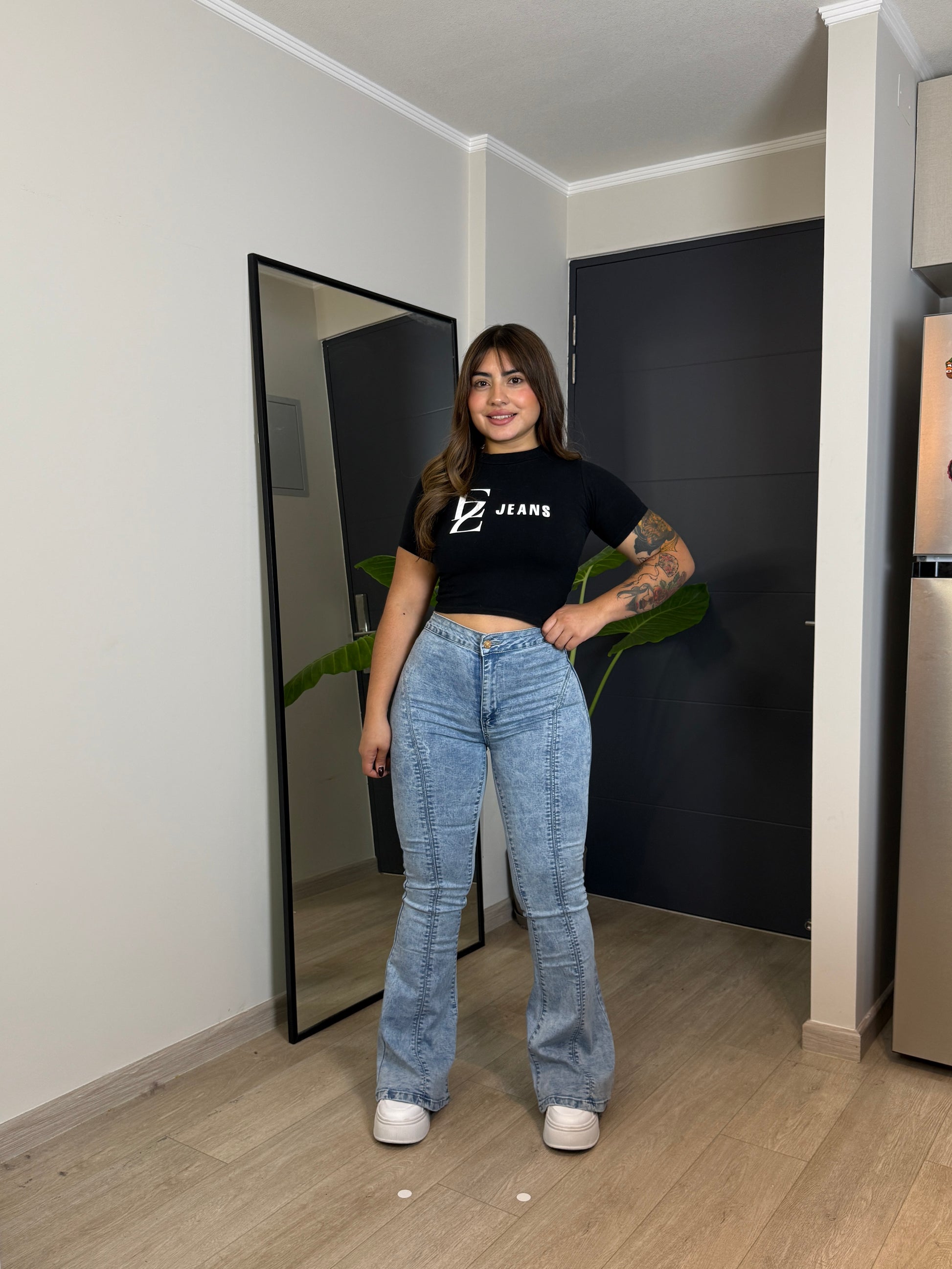 MB2063 (V1) | Flare Celeste Lineal Sin Bolsillos Adelante | Menina | Venta Por Mayor