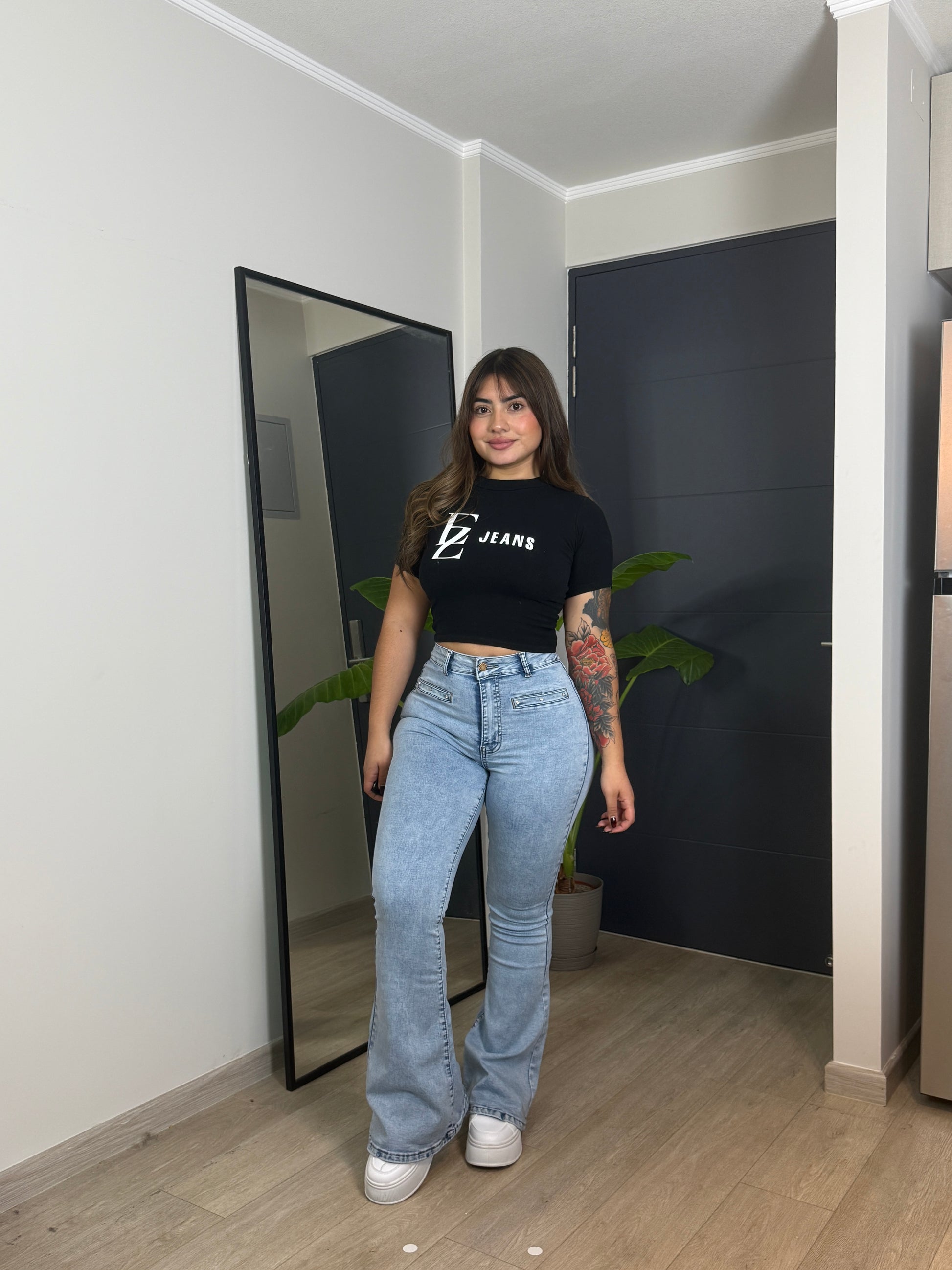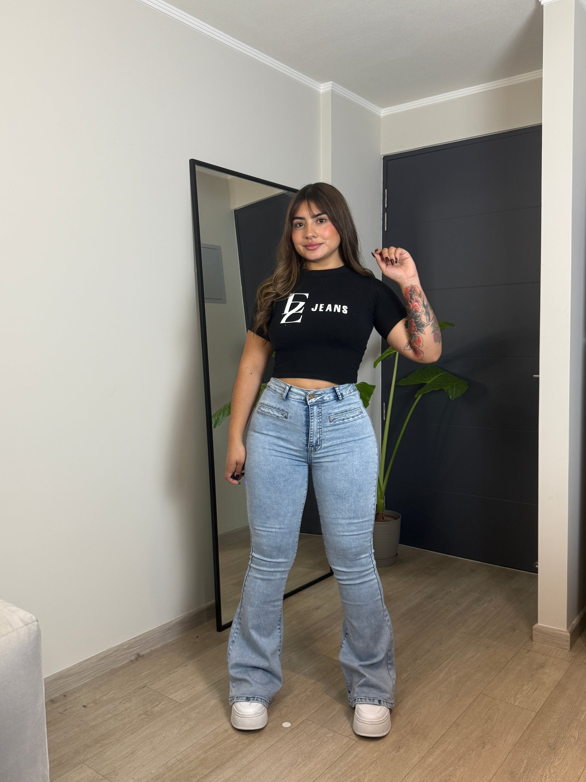 MB2065 (J5) | Flare Celeste Jaspeado Bolsillo Escondido | Menina | Venta Por Mayor