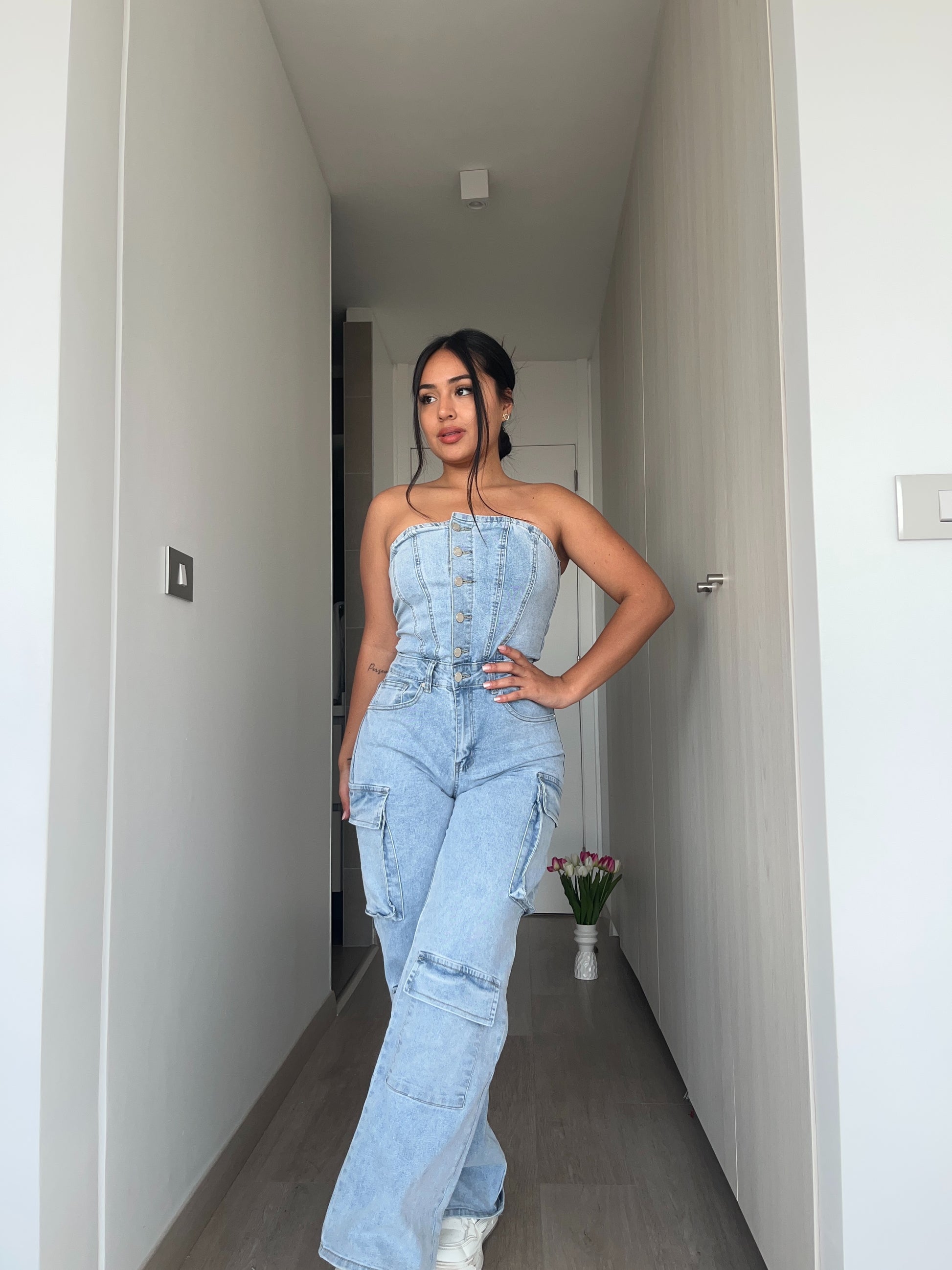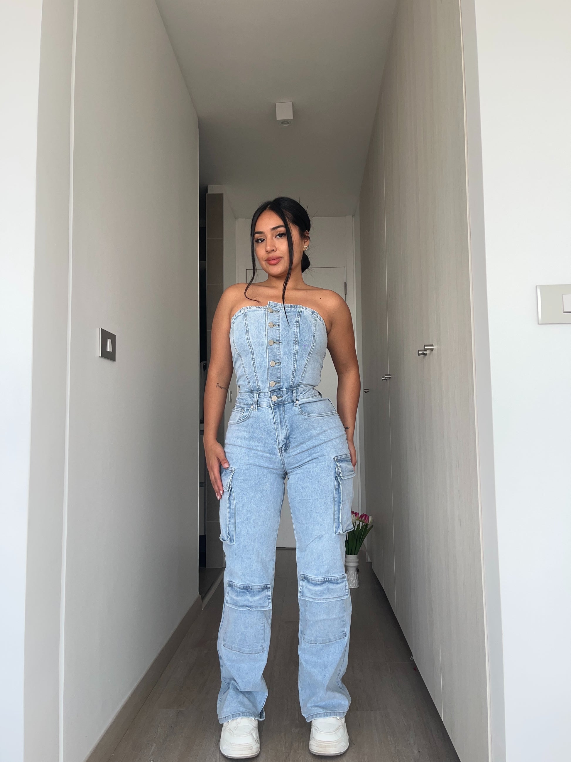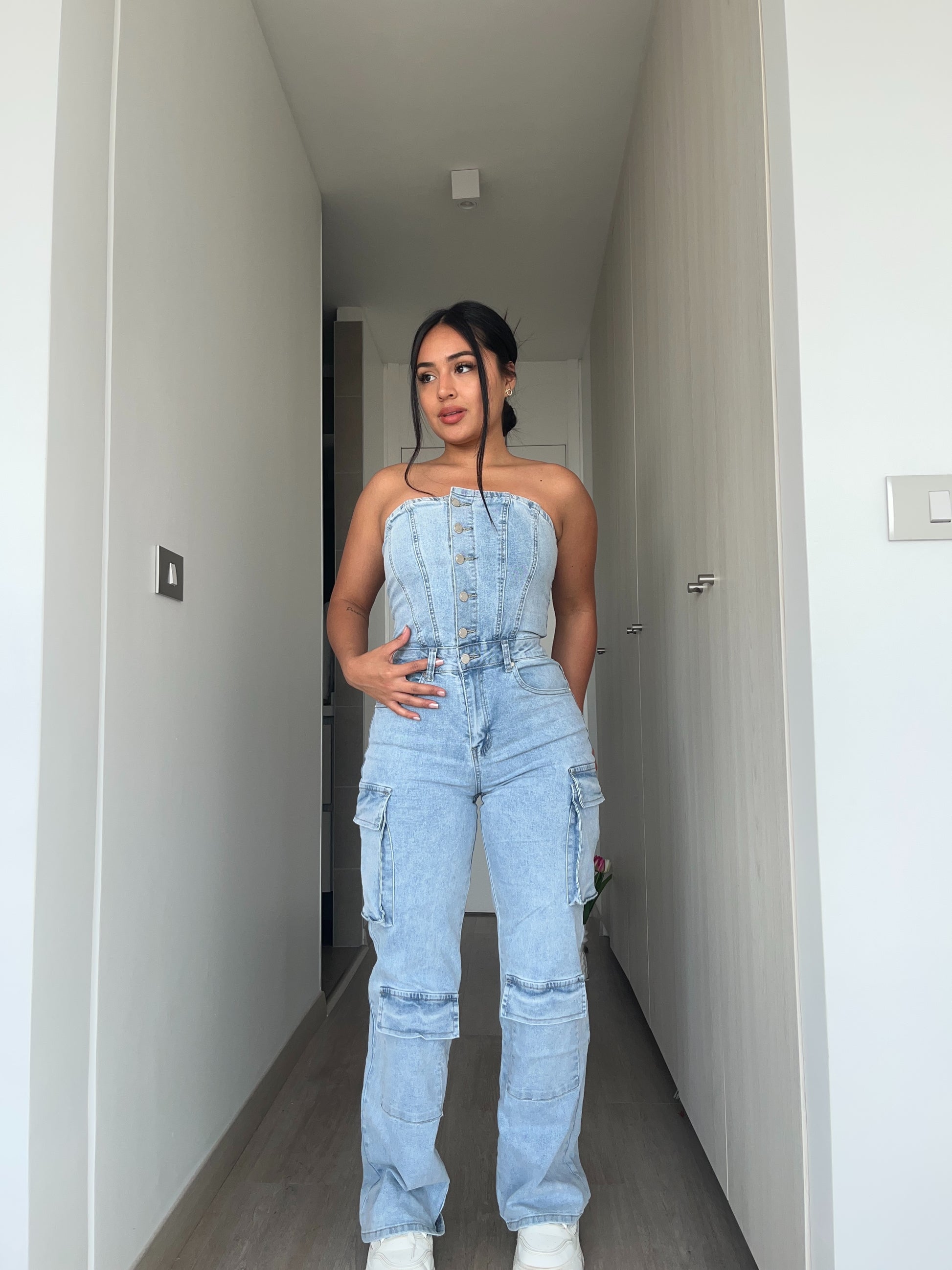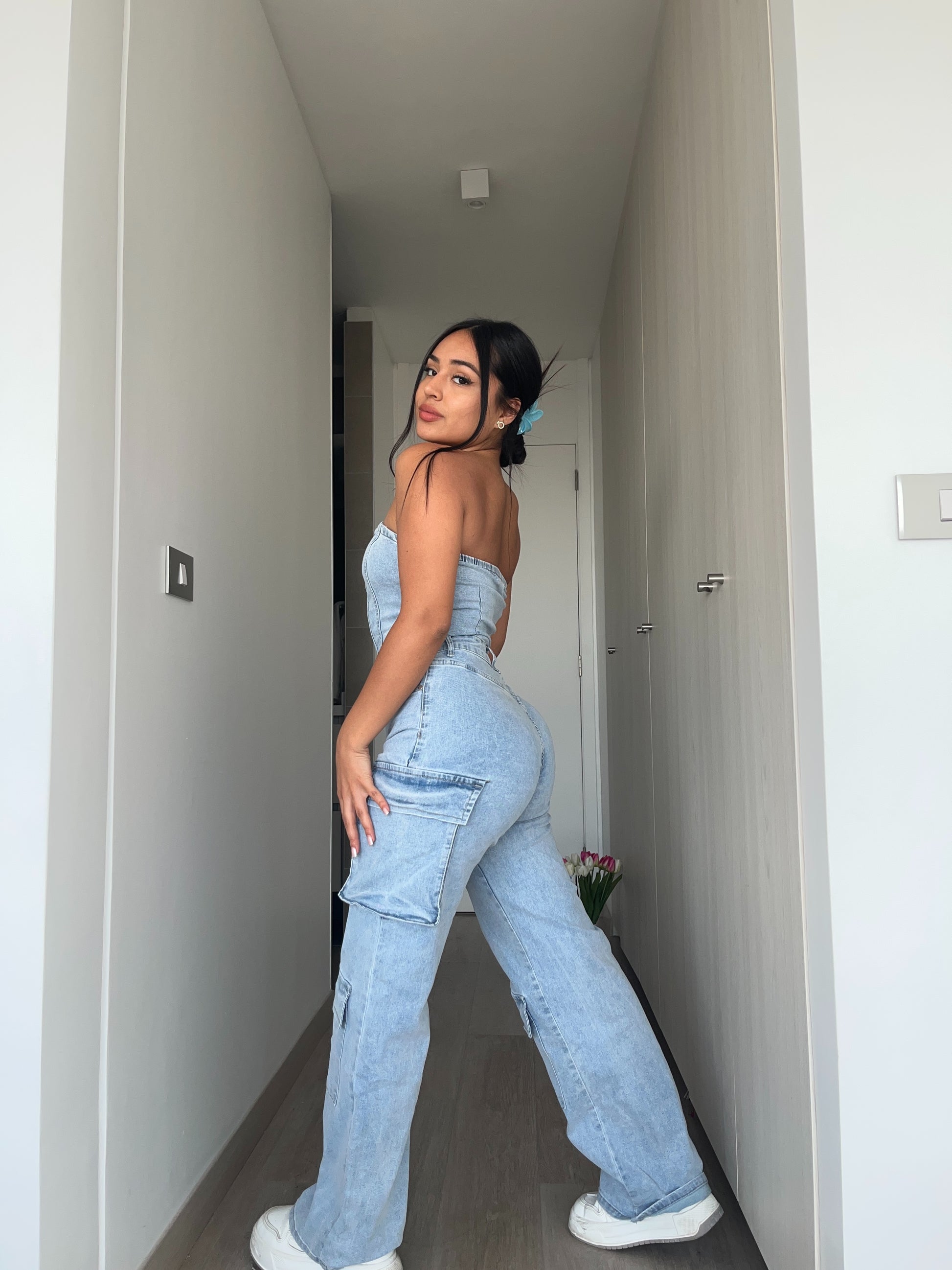 Enetrito largo tipo cargo, color celeste, es elasticado y muy comodo.