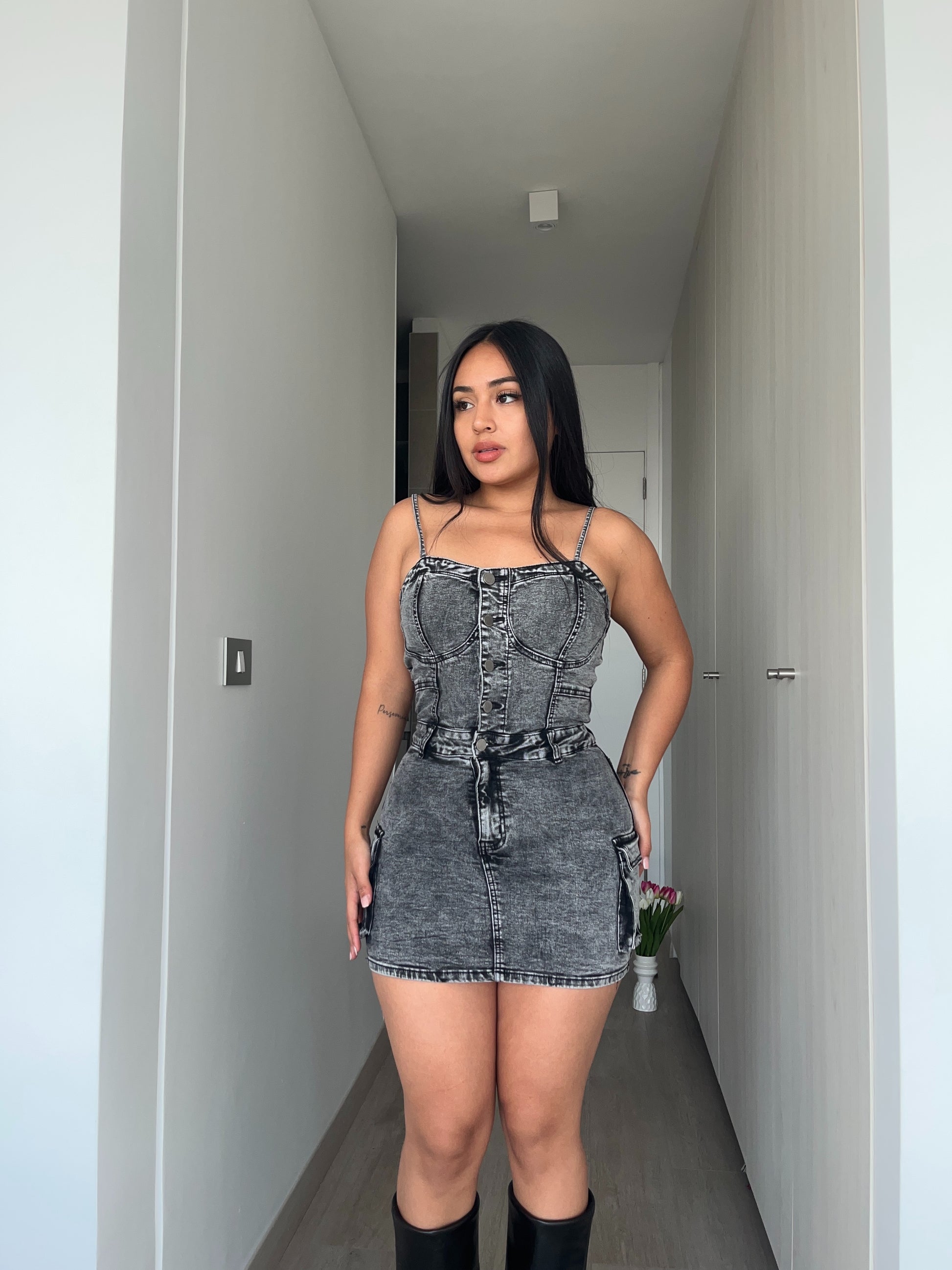 Enterito, con botones, la faldas es con short por abajo, es elasticado, push up.
