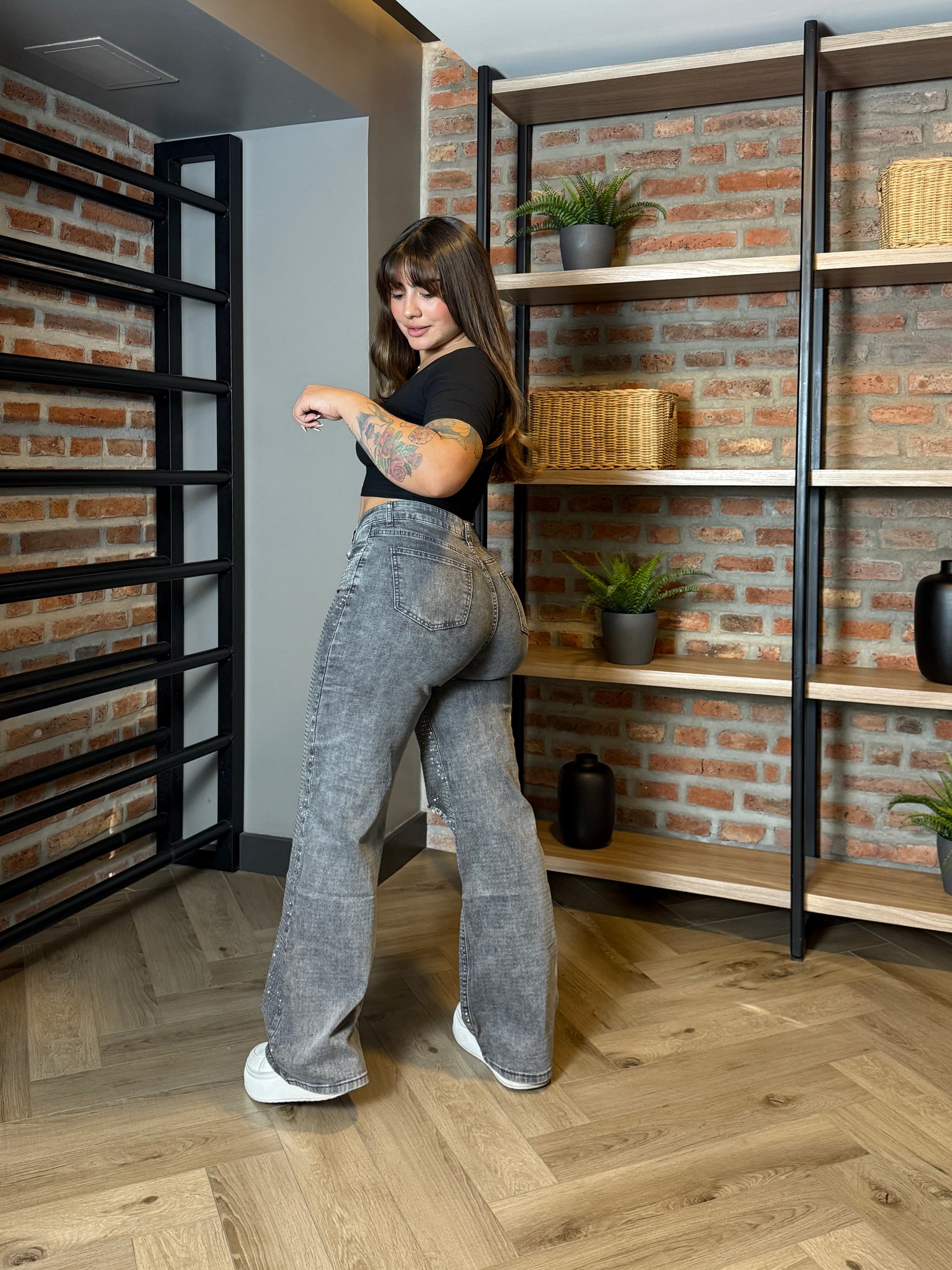 MB7031-3 (C2) | Jeans Recto Brillos Gris | Menina | Venta Por Mayor