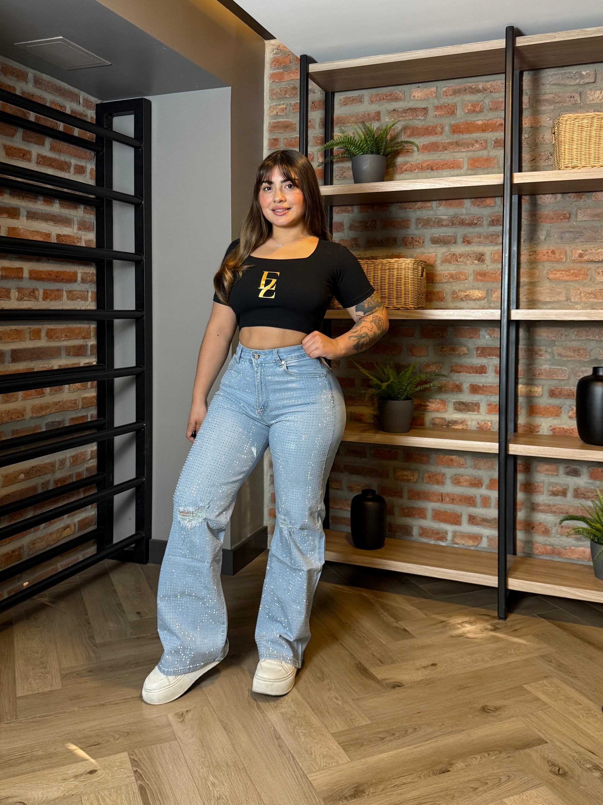 MB7031 (I3) | Jeans Recto Brillos Celeste Focalizado | Menina | Venta Por Mayor