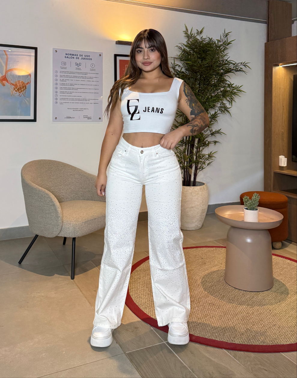 MB7052 (E7) | Wide Leg Blanco Brillos | Menina | Venta Por Mayor