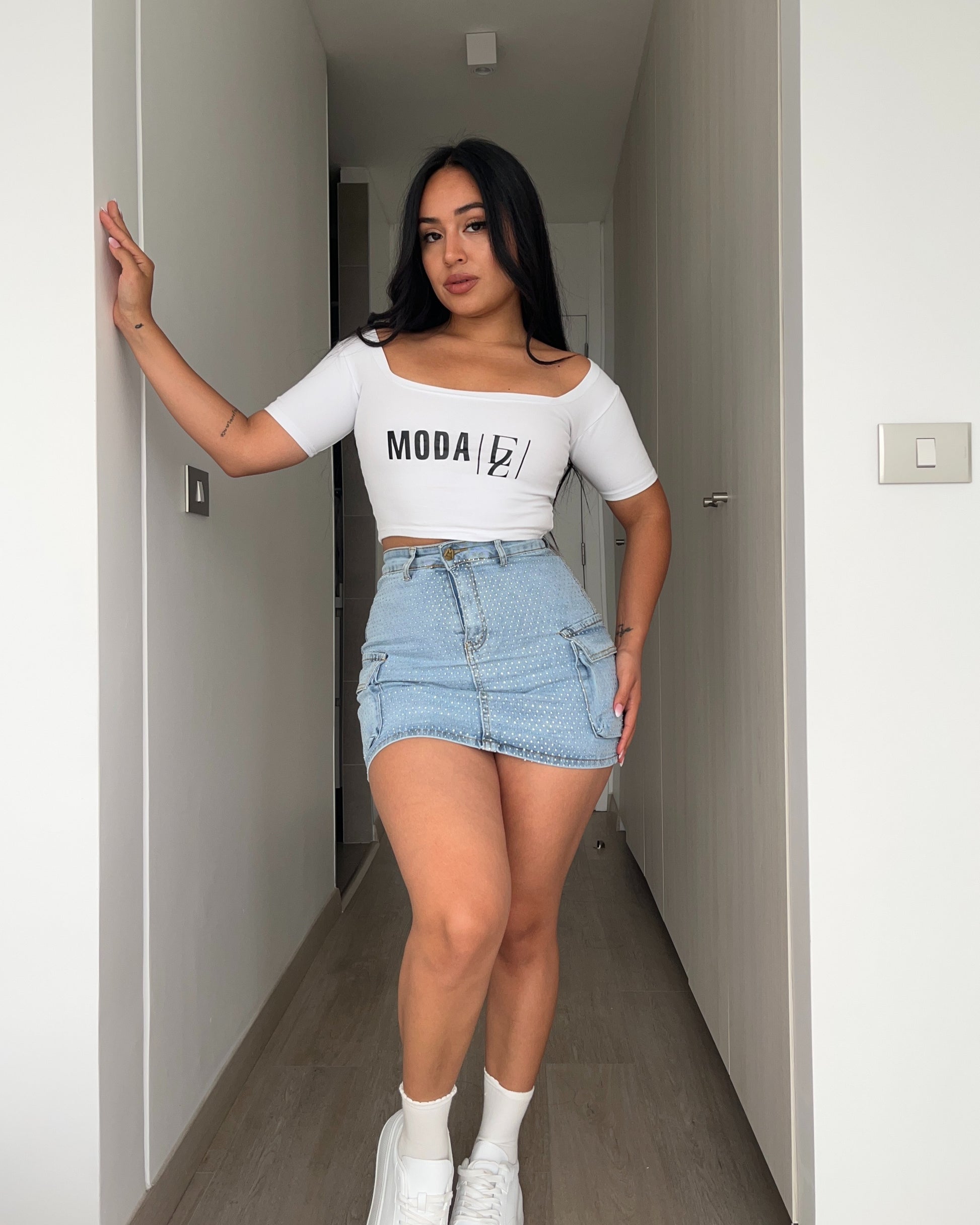 N672-1 (Q1) | Falda Short Cargo Full Brillos | Menina | Venta Por Mayor