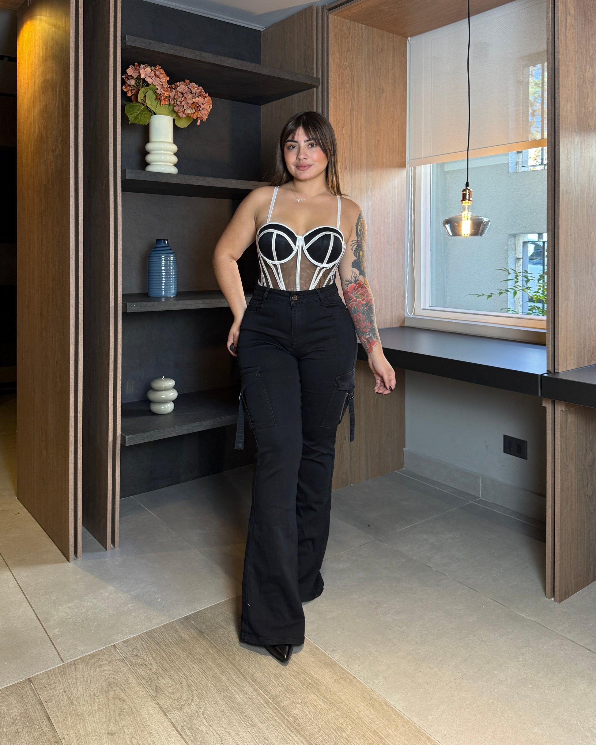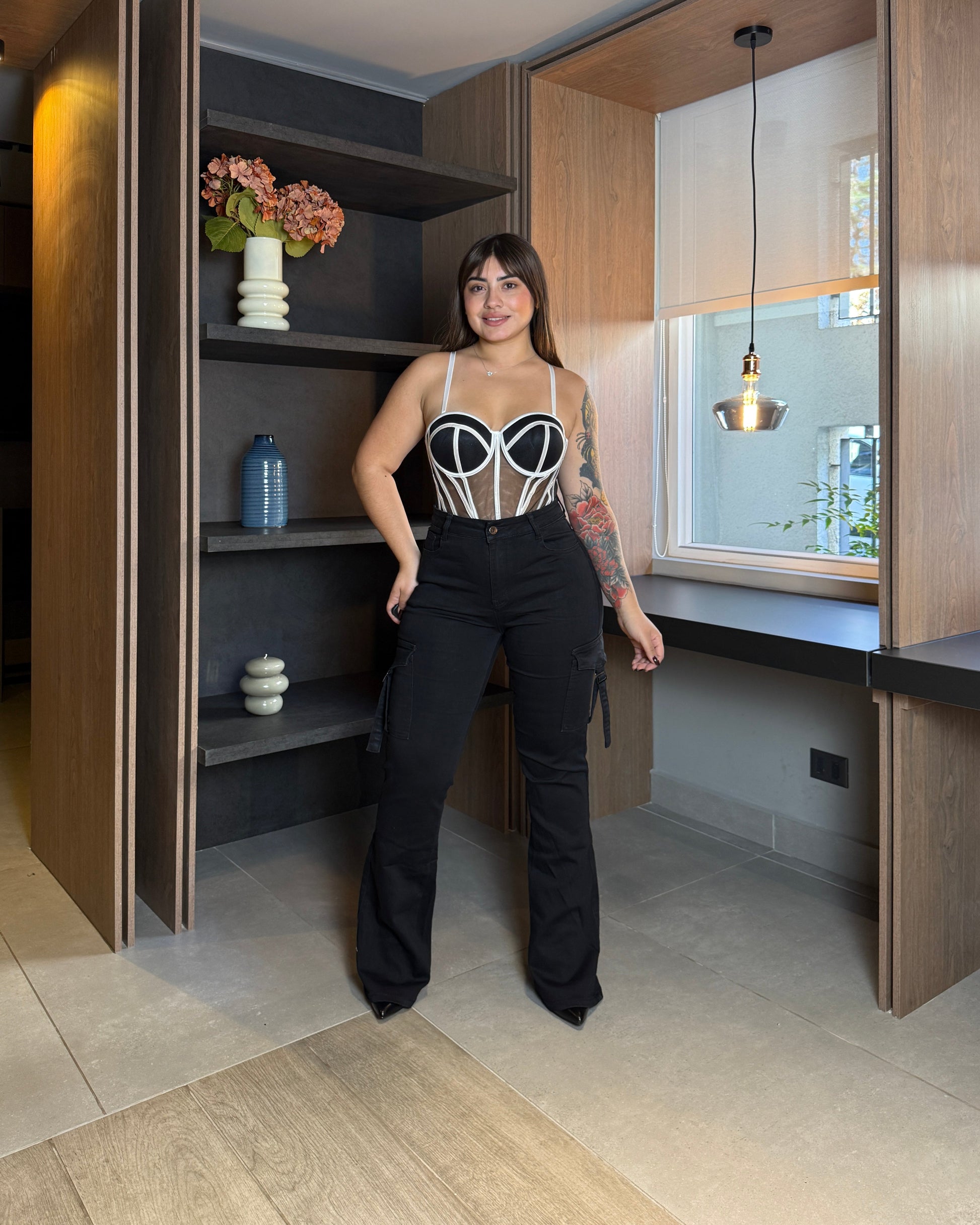 N702-1 (K2) | Jeans Cargo Negro | Menina | Venta Por Mayor
